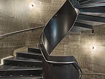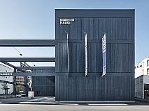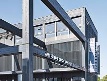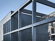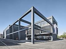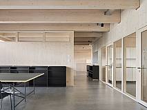 Das Gebäude wird als Büro- und Ausstellungsgebäude genutzt und ist inklusive der runden Treppenhauswände und des Liftschachts in Holzbauweise erstellt. Der Aufbau dieser sonst so oft in Beton ausgeführten Bauteile ist somit nicht nur durch die Brandschutzanforderung der «Kapselung», sondern auch durch die runde Form pionierhaft. Ebenfalls sind die nicht tragenden Trennwände in Holz gefertigt und deren Beplankungen, sowie die Bodenbeläge sind Holzoberflächen. Durch die reine Lastabtragung und Aussteifung über die Aussenwände kann die Innenraumgestaltung durch Öffnen der Böden, oder das Verschieben von Treppen und Wänden stetig verändert werden. Die abschliessende Fassadenverkleidung ist mit braun-druckimprägniertem Holz ausgeführt und wurde mit einer schwarzblauen Lasur optisch aufgewertet.