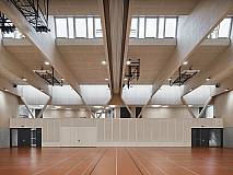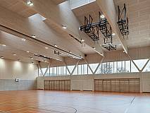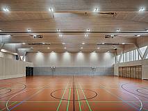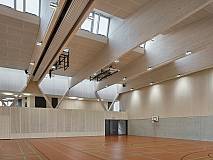 Die Gemeinde Staufen hat eine neue Sportstätte bekommen. Die wichtigste Rolle dieser Doppelsporthalle spielen dabei die imposanten V-Stützen. Denn die sind nicht nur optisch das Hauptaugenmerk, sondern tragen auch die komplette Gesamtlast des Hauptdachs.