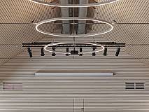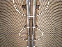 in Holz. Das absolute Highlight ist die Decke: 800 m² Täfelung und ca. 60’000 Täfer Klammern.