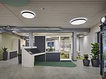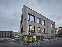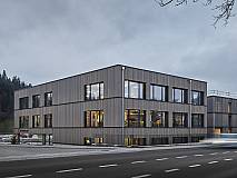 Das Tragwerk besteht aus einem Skelettbau in Holz, während die Fassade aus vorgehängten Holzelementen mit vertikaler Holzschalung gestaltet wurde. Unsere Schreinerei konnte mit besonderen Details überzeugen. Darunter freistehende, beleuchtete Schränke, technisch anspruchsvolle Empfangsmöbel und Schränke mit versenkbaren Türfronten.