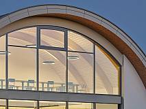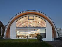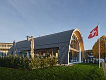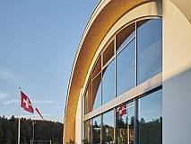 Für den Aero-Club Langenthal entstand mit dem Hangar 5 ein Restaurantbau in runder Ausführung, der den präzisen Einsatz von Holzbau bei komplexen Geometrien zeigt. Der Auftrag umfasste den Montagebau in Holz, das runde Holztragwerk mit vorgefertigten