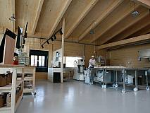 Eine Bäckerei und zugleich ein Show-Erlebnis für die Kunden. Denn mit der direkten Produktions-Einsicht wird das Bäcker-Handwerk praktisch erlebbar. Durch die gewählten Oberflächen im Innen- und Aussenbereich gleicht die Bäckerei einem klassischen Chalet, allem voran durch die Schindeltechnik. Mit der grosszügigen Fensterfront vereinen sich Tradition und Moderne und das Gebäude bekommt einen modernen Charakter.